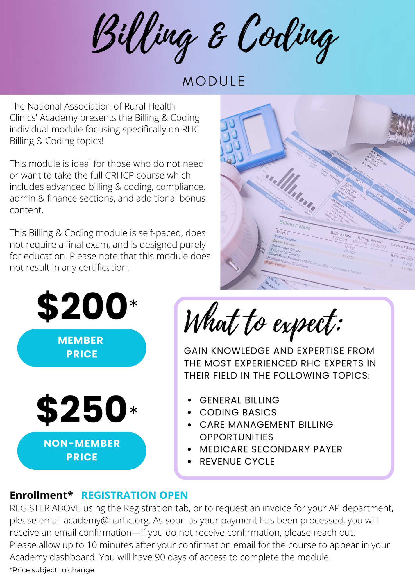 | Non-Member - Module 2: Billing & Coding Registration: $250.00 | Register |