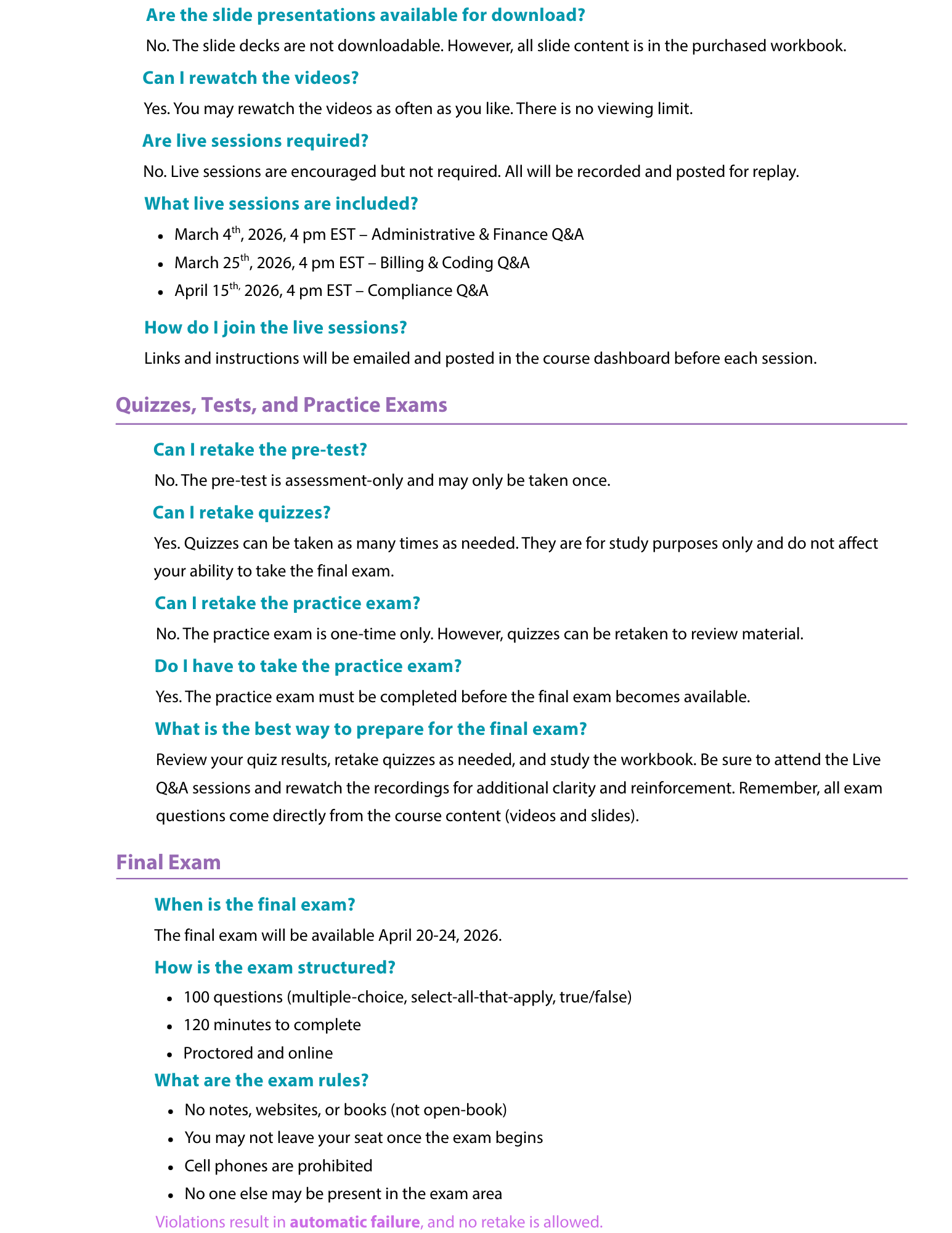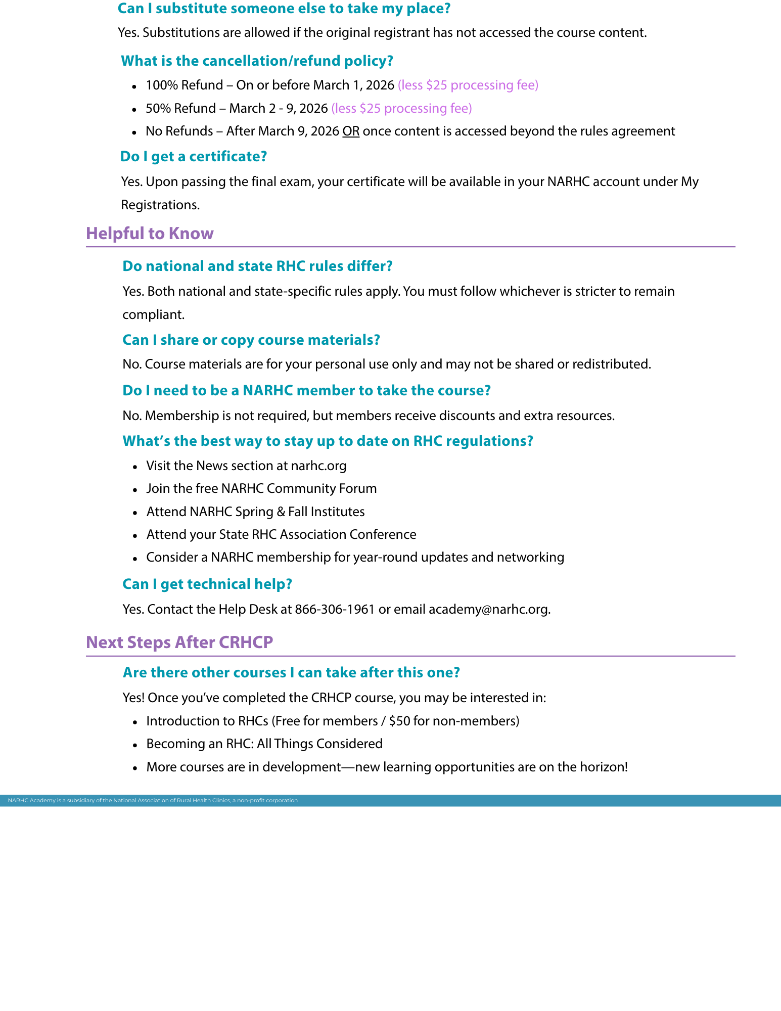 Substitute Attendee/Transfers - Substitutions and transfers to any future courses are not allowed.